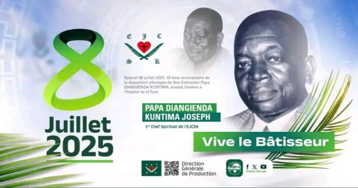l’Église Kimbanguiste a commémoré ce mardi 08 juillet 2025, les 33 ans de la disparition physique de papa Diangienda Kuntima Joseph, fils cadet de Papa Simon Kimbangu et de Maman Marie Muilu Kiawanga, premier Chef Spirituel et bâtisseur de l’église. Découvrez le parcours élogieux de l’homme aux multiples facettes